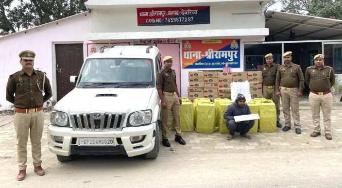 देवरिया जनपद में अवैध शराब तस्करी के खिलाफ चलाए जा रहे अभियान के तहत पुलिस को बड़ी सफलता हाथ लगी है। थाना श्रीरामपुर पुलिस ने 80 पेटी अवैध देशी शराब के साथ एक अंतर्राज्यीय शराब तस्कर को गिरफ्तार किया है। बरामद शराब की कुल मात्रा लगभग 720 लीटर बताई जा रही है, जिसे बिहार ले जाया जा रहा था।